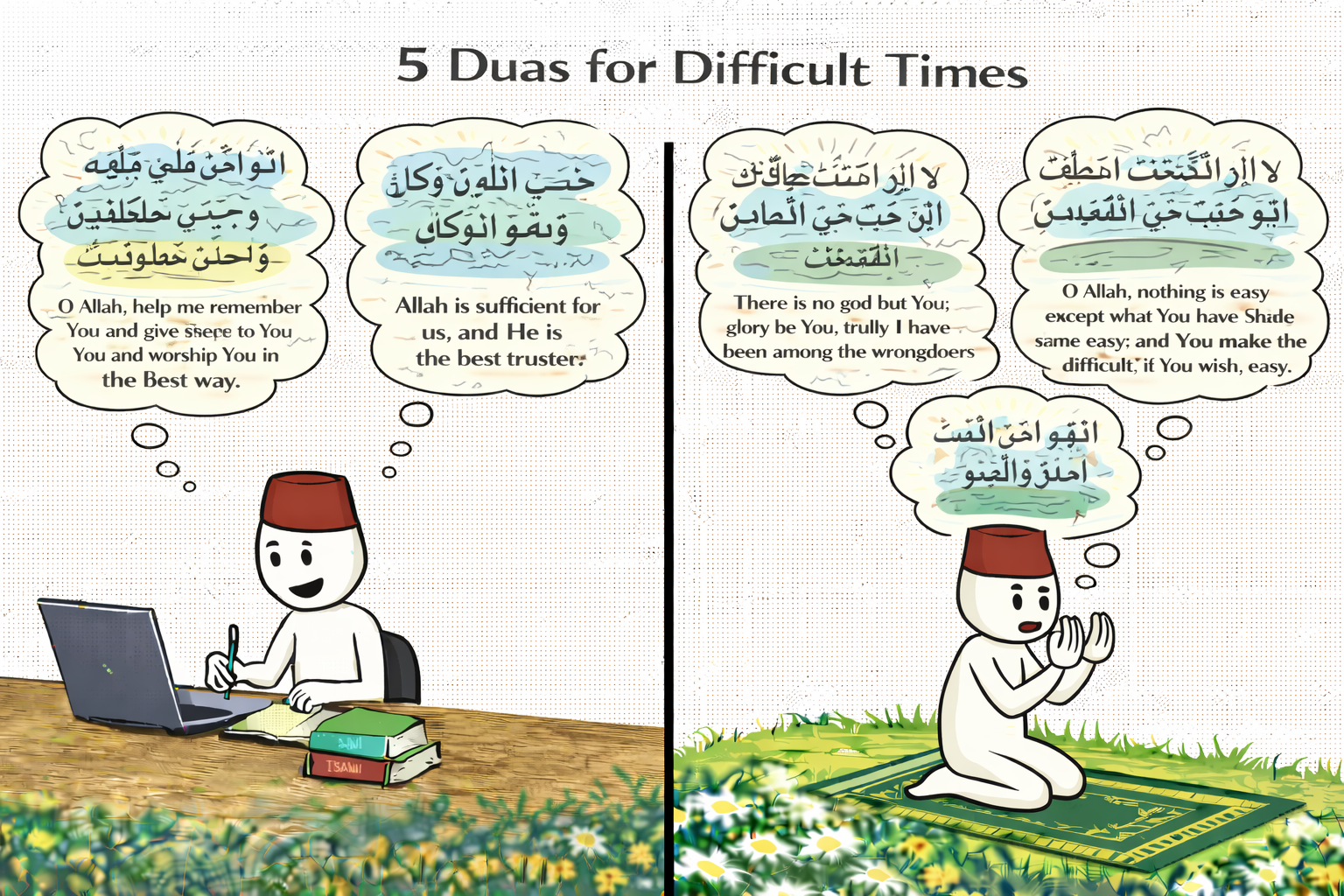 “Allahumma la sahla illa ma ja‘altahu sahla, wa anta taj‘alu al-hazna idha shi’ta sahla.”