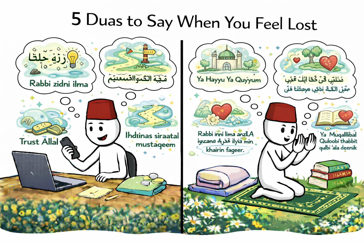 Each of these supplications reminds us that Allah is near, listening, and ready to guide us through every moment of confusion and uncertainty.