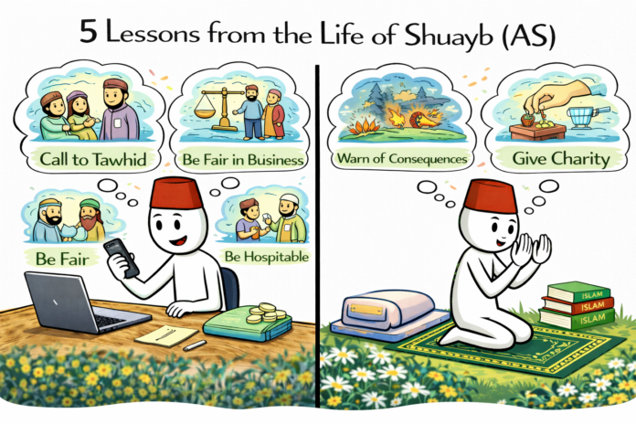 The life of Shuayb (AS) teaches us honesty, courage, patience, and trust in Allah.