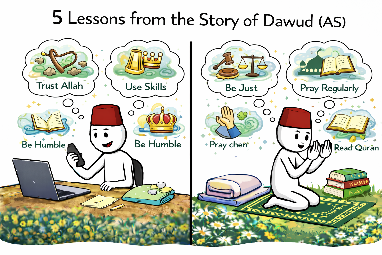 The story of Dawud (AS) teaches us that true success lies in faith, humility, justice, devotion, and sincere repentance.
