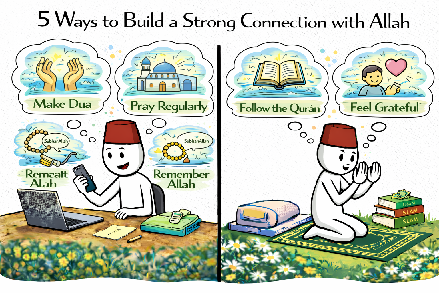 A strong connection with Allah is the foundation of a peaceful heart, a purposeful life, and a firm faith. It is what keeps you steady during hardships, grateful during ease, and mindful in every moment. This connection is not built overnight — it grows through consistent effort, sincerity, and small daily actions.