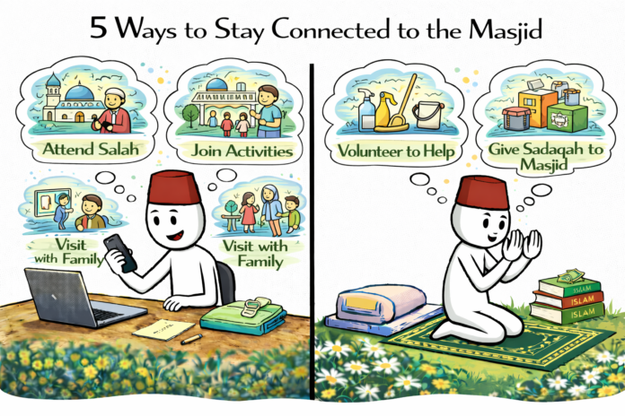 By making congregational prayer a habit, attending gatherings, spending extra time there, contributing to the community, and making du’a, you can develop a lasting bond with the masjid.